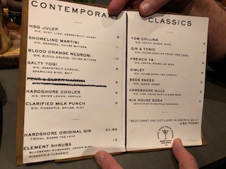 I keep to a 2 drink maximum, per day. Why? Too many calories, too much likelihood I’ll say something untoward, and too much risk of tripping over my own feet. Spouse ordered the Bees Knees, made with the flagship gin, honey, & lemon. OHMIWERD. Bliss. I shared way more of this cocktail than I normally would, but it was SO TASTY!